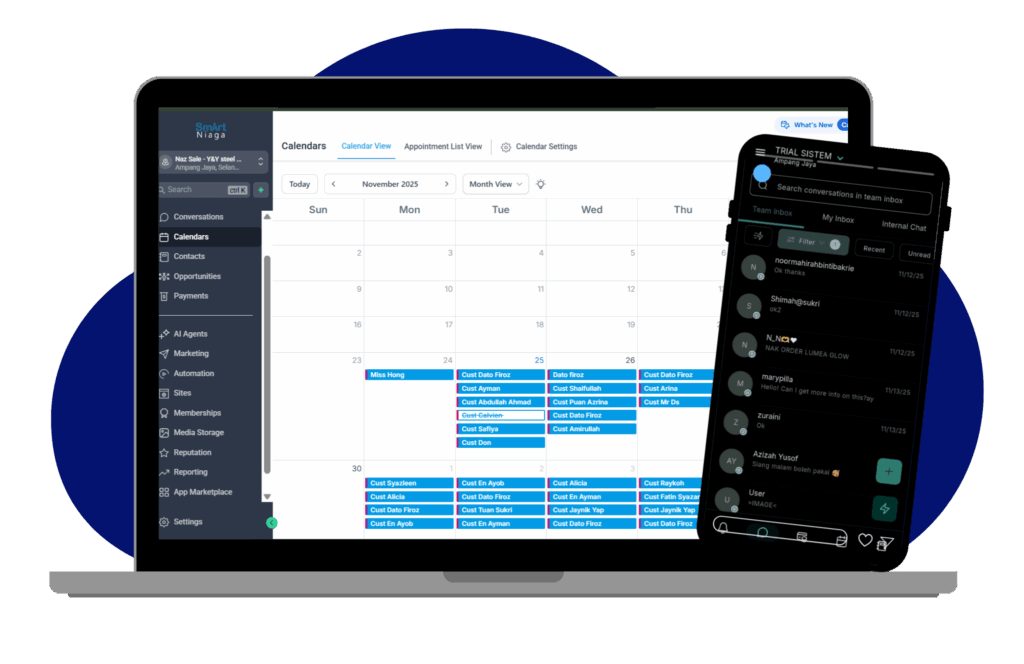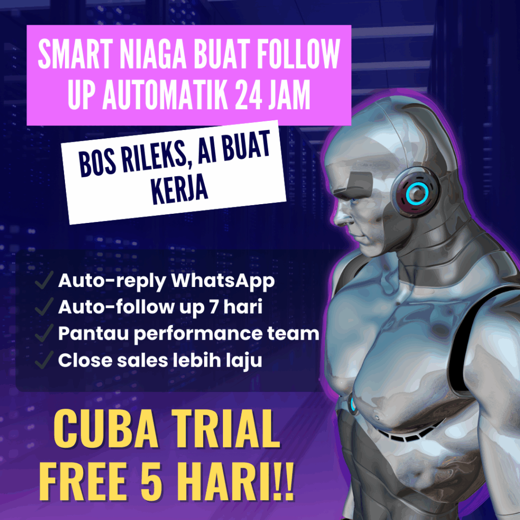Smart Niaga urus semua follow-up, balas pelanggan, dan pantau team secara automatik—supaya anda boleh fokus pada jualan, bukan kerja ulang-ulang.